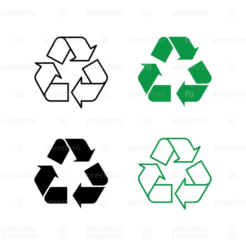 Набор символов Recycle черная зеленая линия и глифовые треугольные стрелки