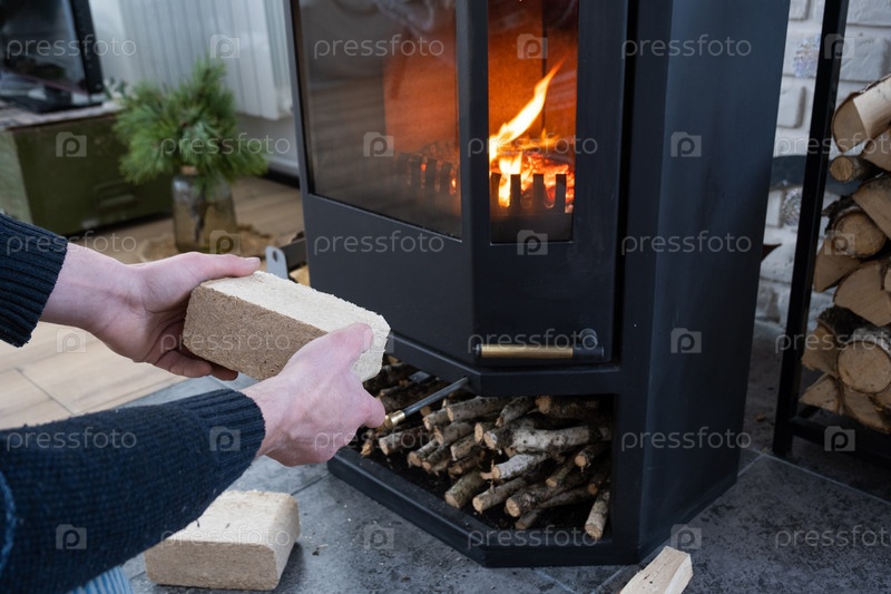 Руки разжигают очаг экономными брикетами. Топливные брикеты из прессованных опилок для растопки печи - экономичная альтернатива экологически чистому топливу для камина в доме