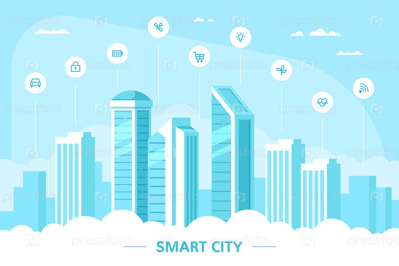 Дизайн баннера концепции умного города в плоском стиле