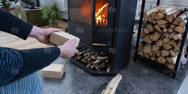 Руки разжигают очаг экономными брикетами. Топливные брикеты из прессованных опилок для растопки печи - экономичная альтернатива экологически чистому топливу для камина в доме