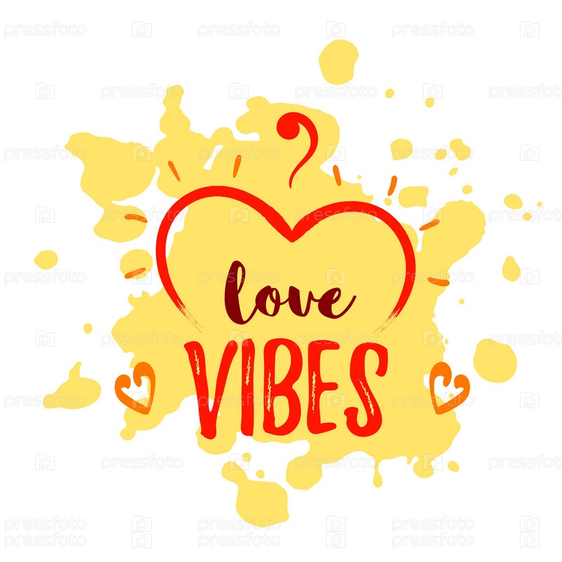 Любовь вибрации. Ручная форма сердца с надписью над каплями краски. Концепция дня святого валентина. изолированные на белом