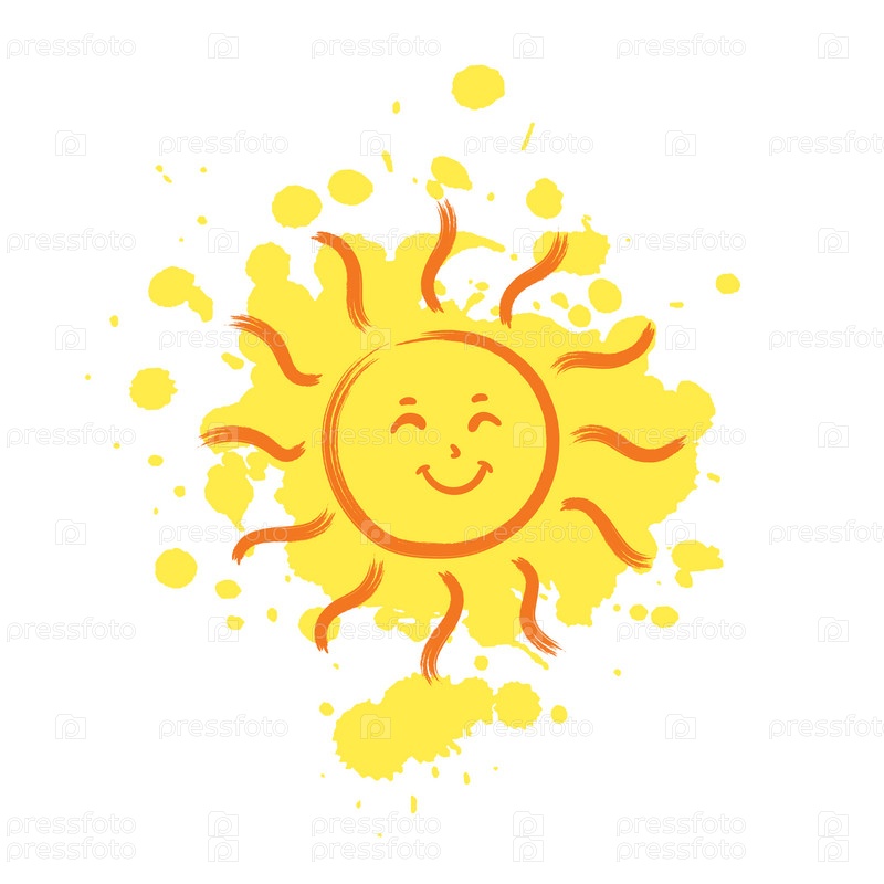 Веселое улыбающееся Солнце с каплями боли на заднем плане. Летние флюиды, привет летняя концепция