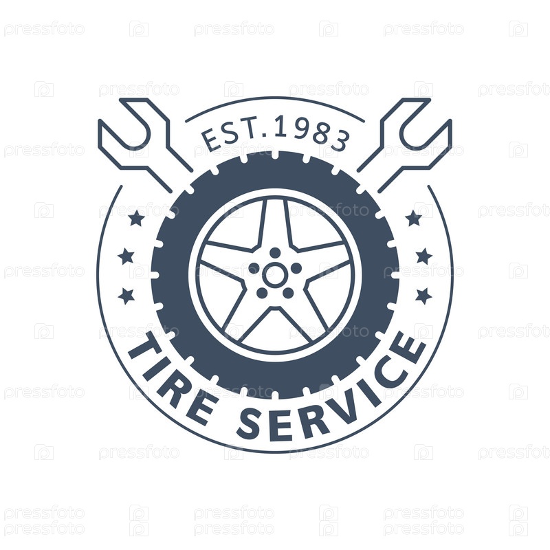 Дизайн значка шиномонтажа. Сервис по ремонту колес. Логотип компании шиномонтажа. Иконка черно-белой линии на белом фоне