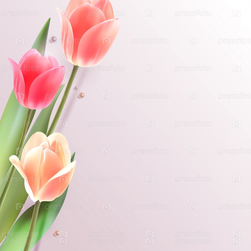 Красивый фон с цветами без текста. Шаблон для рекламы косметики, праздник Дня матери. Векторная иллюстрация