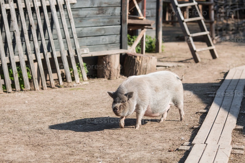 Скот. Скот. Вьетнамская свинья на ферме в загоне