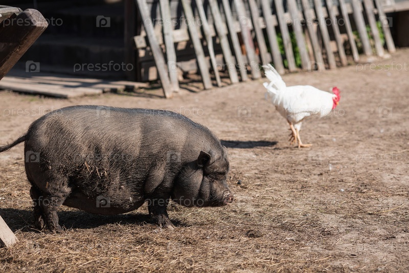Скот. Скот. Вьетнамская свинья на ферме в загоне