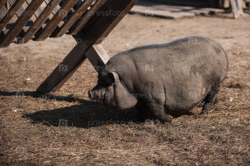 Скот. Скот. Вьетнамская свинья на ферме в загоне
