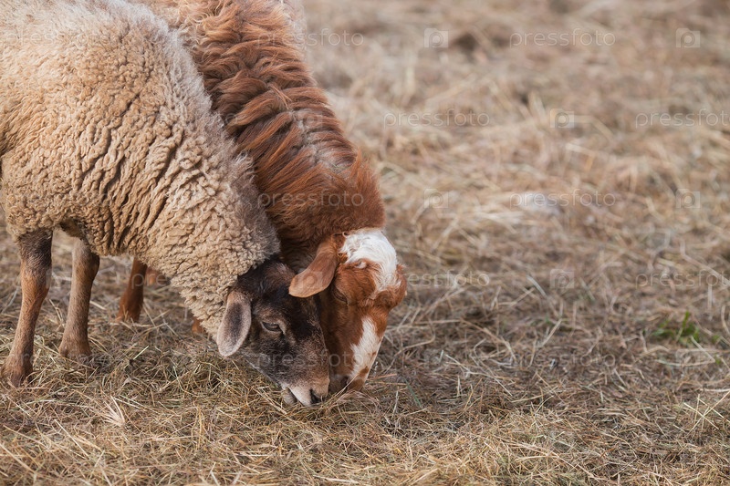 Скот. Овца в загоне. Концепция животноводства и сельской жизни. Портрет овец на свежем воздухе. Крупный план. Домашнее животное на частной эко ферме. Сельскохозяйственная промышленность
