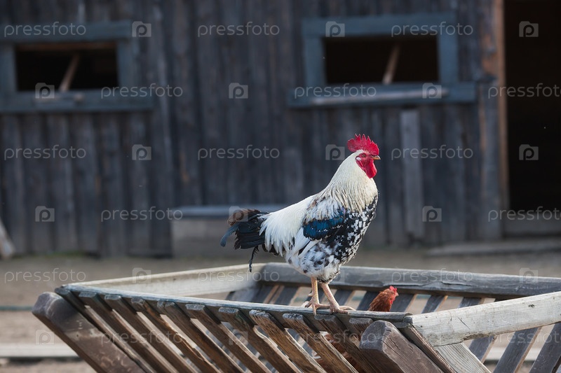 Красивый, яркий петух на фоне природы. Символ китайского Нового года