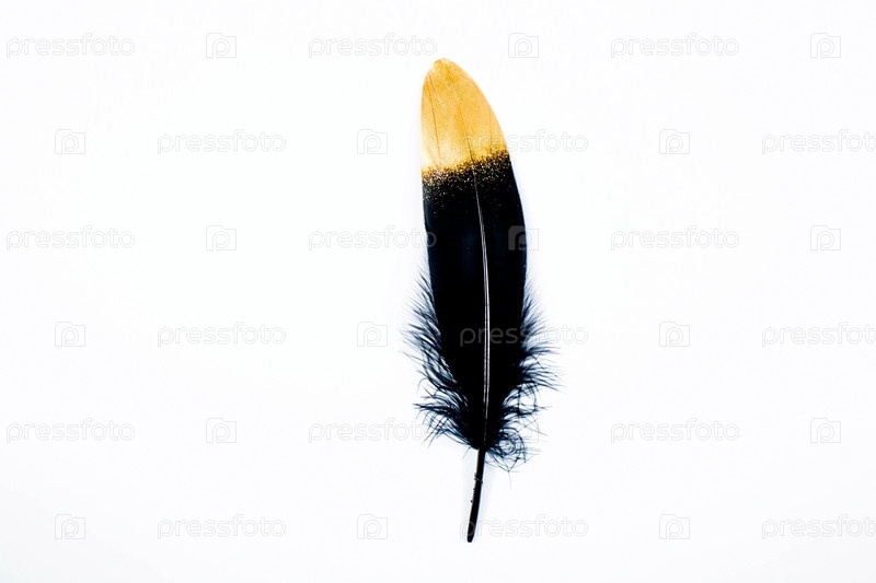 Баннер. Стильное черно-золотое перо. Узор с черными перьями на изолированном белом фоне. Вид сверху. категорически