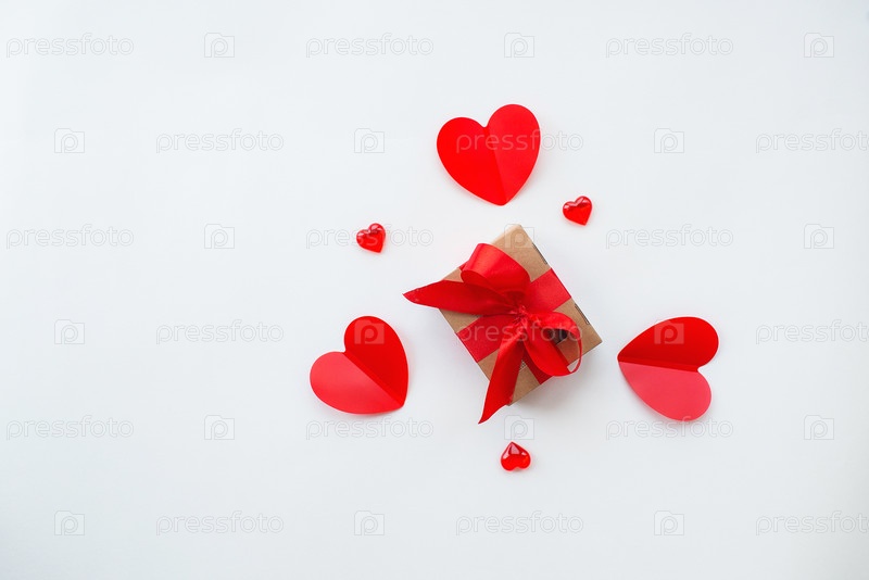 Подарочная коробка на белом фоне. Концепция дня святого валентина. Плоская планировка, вид сверху, пространство для копирования