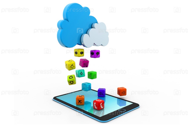Дождь из приложений над планшетом