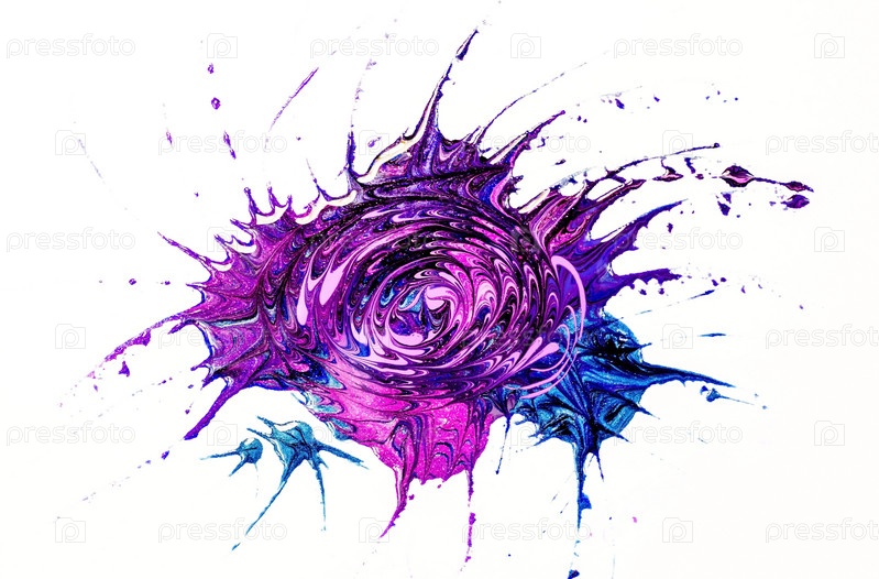 Плакат. Текстура лака для ногтей на изолированном белом фоне. Розовые, синие и фиолетовые тона. Абстрактный рисунок. Красивый арт-объект на стене