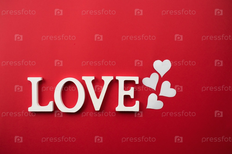 Слово любовь белыми буквами на модном красном фоне. С Днем святого Валентина, Днем матери, 8 марта, Всемирным женским днем. Плоская планировка