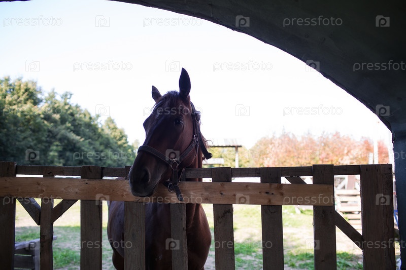 Скот. Красивые лошади на пастбище. Лошади в загоне. Животноводство