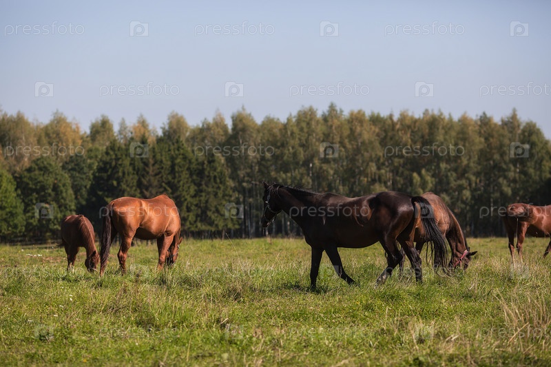 Скот. Красивые лошади на пастбище. Лошади в загоне. Домашний скот