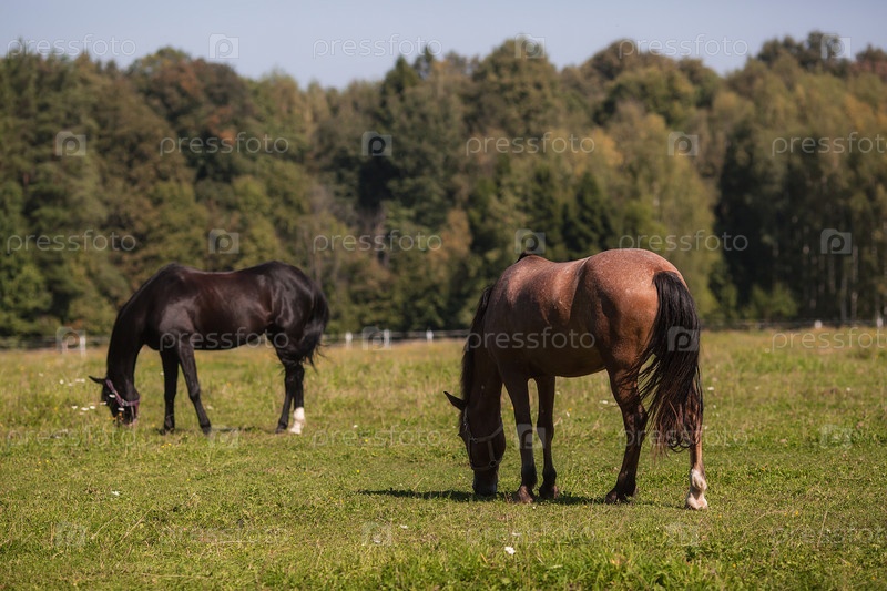 Скот. Красивые лошади на пастбище. Лошади в загоне. Домашний скот