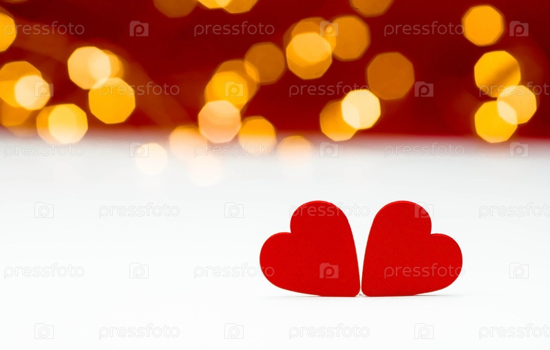 Баннер. Фон для Дня святого Валентина. два сердца с праздничными огнями боке на заднем плане. макет пригласительного билета на вечеринку в честь дня влюбленных, пространство для копирования
