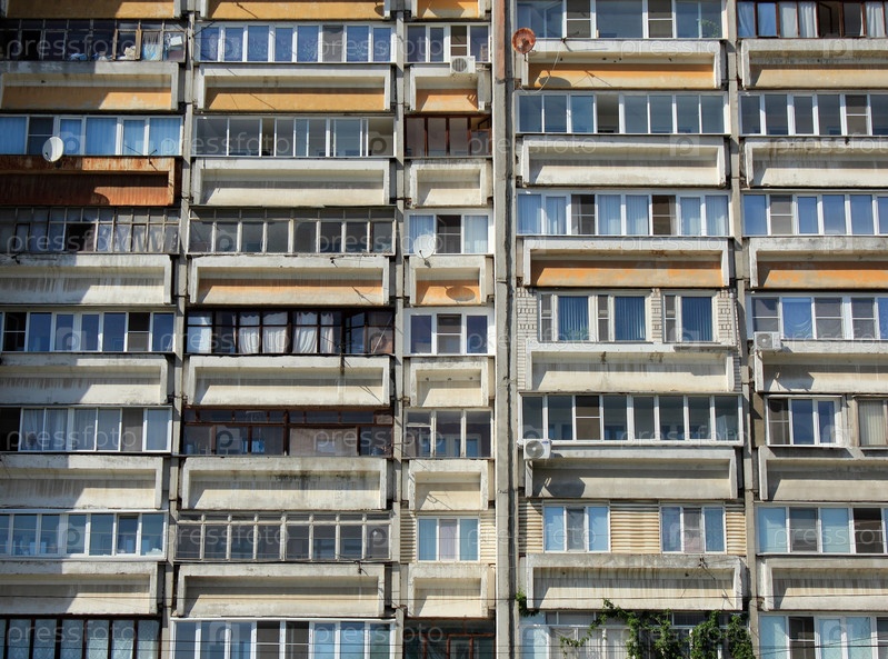 Окна и балконы старого многоэтажного дома