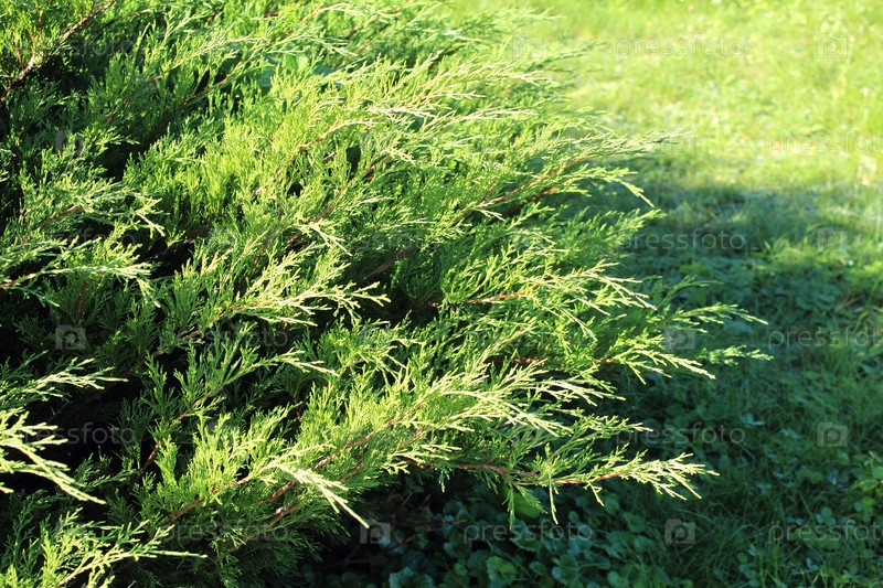 Зеленый декоративный куст в ландшафтном дизайне парка в летний день