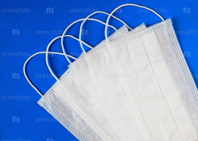 Противовирусная маска на синем фоне. Защитные маски
