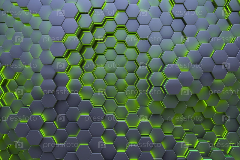Шестигранные стержни топливных элементов. Абстрактный фон. Зеленый стиль
