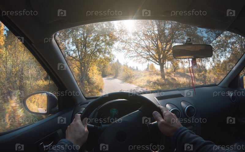 Вождение автомобиля. Вид от первого лица. Осенний антураж