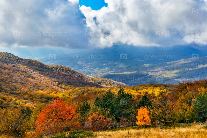 Вид с горы на пейзаж крыма в осенний день