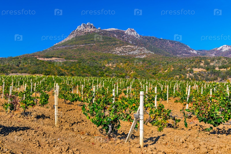 Виноградник и горы в крыму в солнечный день