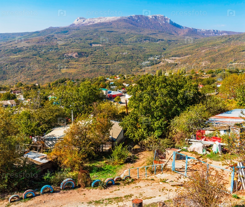 Плато чатыр-даг и деревня в крыму в осенний день