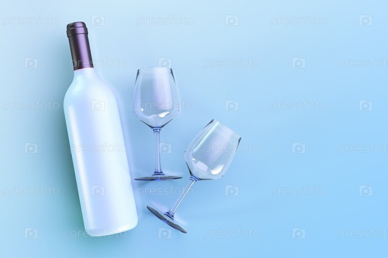 На столе бутылка спиртного и два стакана. Синий стиль