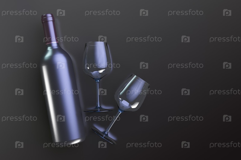 Бутылка дорогого алкоголя и два стакана лежат на столе