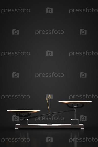 Неуравновешенные гиревые весы. Темная комната. Копировать пространство