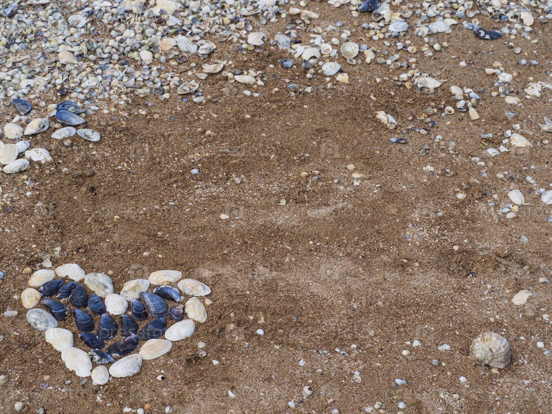 Символ представляет собой сердце из ракушек и раковину рапана, лежащую на летнем фоне пляжного песка из ракушек. Копировать пространство