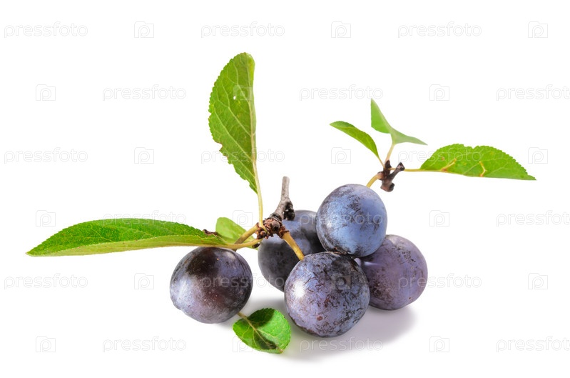 Спелые плоды терновника с листьями на белом фоне с мягкой тенью