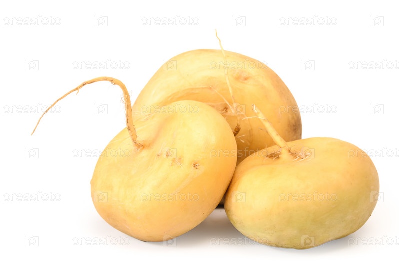 Спелые клубни репы на белом фоне с мягкой тенью