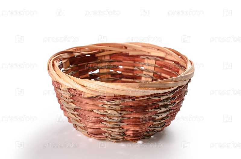 Декоративная плетеная корзина на белом фоне с мягкой тенью