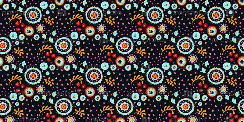 Бесшовный узор с фантазийными цветами, этнический вращающийся повторяющийся дизайн ткани и плитки, натуральные обои, иллюстрация завитка цветочного декора. Пейсли печать рисованной элементы.Украинский узор