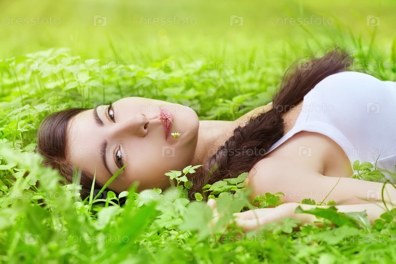 Женщина лежит в траве