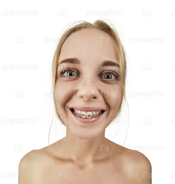 Женщина с брекетами