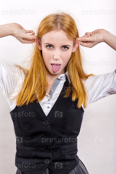Девушка показывает язык