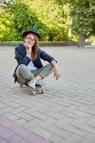 Улыбающаяся девушка-хипстер