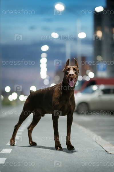 Доберман в ночном городе