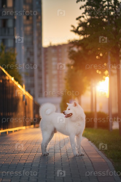 Белая собака акита-ину