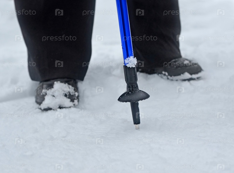 Фрагмент скандинавской ходьбы, застрявший в снегу