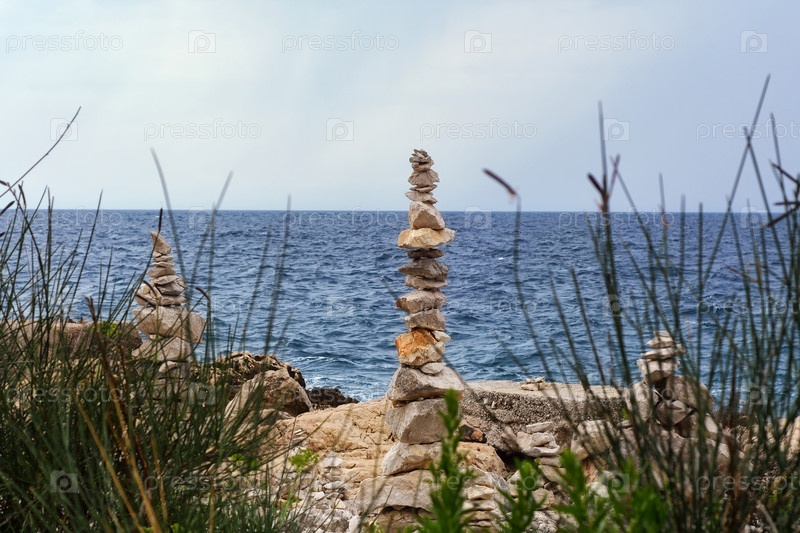 Каменные пирамиды на берегу