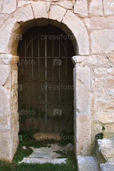 Вход с железными решетками