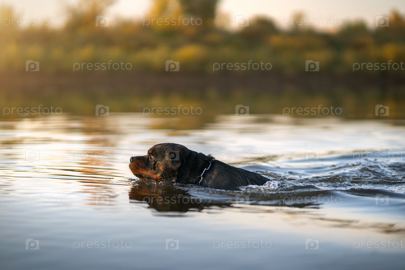 Собака ротвейлера на озере