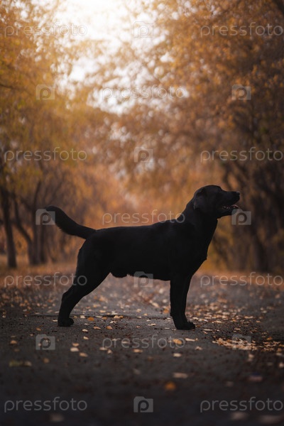 Лабрадор в осеннем парке, сентябрь