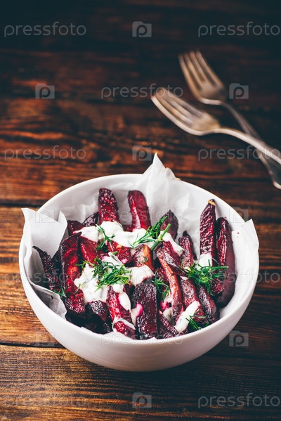 Свекла фри, запеченная в духовке со сметаной и укропом